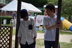 たらふく食べた後は運動ですね。ちょうど遊具がたくさんありました。これは、何をしてるんだろう。。笑
