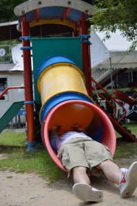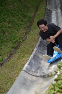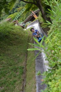 この遊具はスピード出しすぎるとコースアウトするそうです。危険すぎる。。